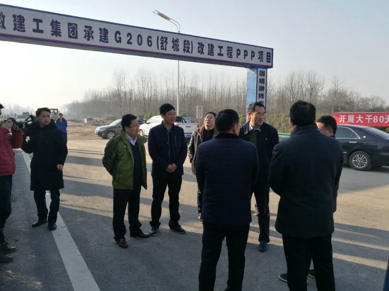 12月19日,安徽省公路局黨委委員、副局長孫東根一行蒞臨G206(舒城段)改建工程PPP項目檢查指導工作。六安市交通局副局長楊廣來,舒城縣交通局局長許教育,舒城安建投資有限公司公司董事長、總經理楊軍,施工、監理單位相關負責人陪同檢查。