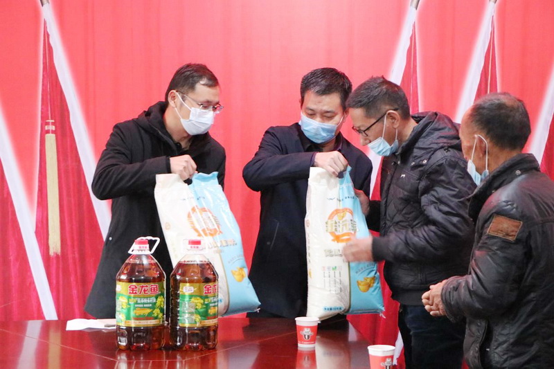 安建投資太湖聯合黨支部黨員與太湖縣財政局副局長劉周寶等相關領導一行給香茗山村困難黨員同志共同送去了米面油等慰問品,同他們親切交談,關心他們的生活現狀和生活訴求。