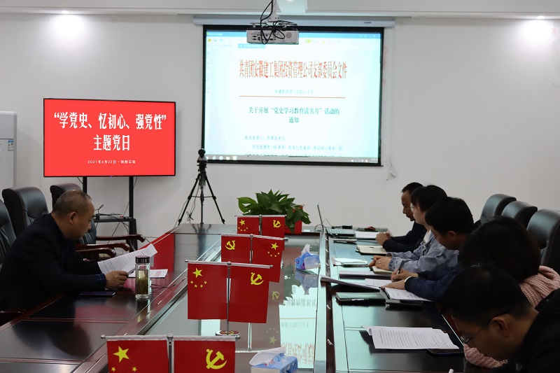 為深入學習貫徹習近平總書記在黨史學習教育動員大會上的重要講話精神,貫徹落實集團黨委和團委關于開展黨史學習教育的安排部署,4月23日,安建投資銅陵項目黨支部開展“學黨史、憶初心、強黨性”主題黨日活動。