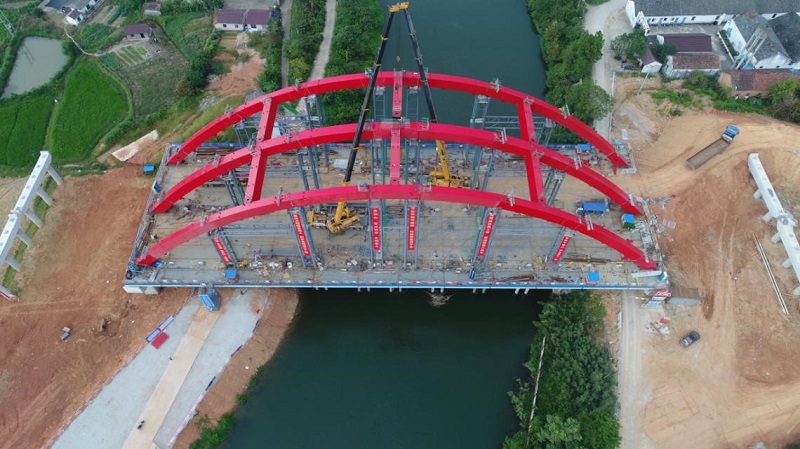 【學黨史 見行動】安建投資涇縣PPP項目S457寧涇公路涇縣段青弋江灌渠大橋工程主拱順利合龍