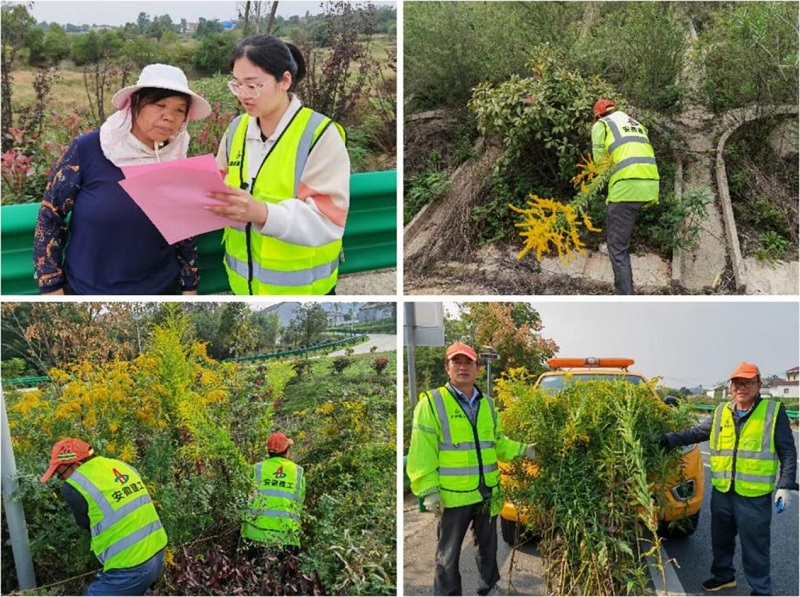 為維護生態平衡,10月12日至17日,建工投資懷寧PPP項目公司組織開展清除“加拿大一枝黃花”專項行動,對項目公路綠化帶存在的入侵物種進行全面清除,并對周邊村民開展知識宣傳普及。截至目前,項目公司已累計清除黃花800余株,全力筑牢公路生態環境安全屏障。