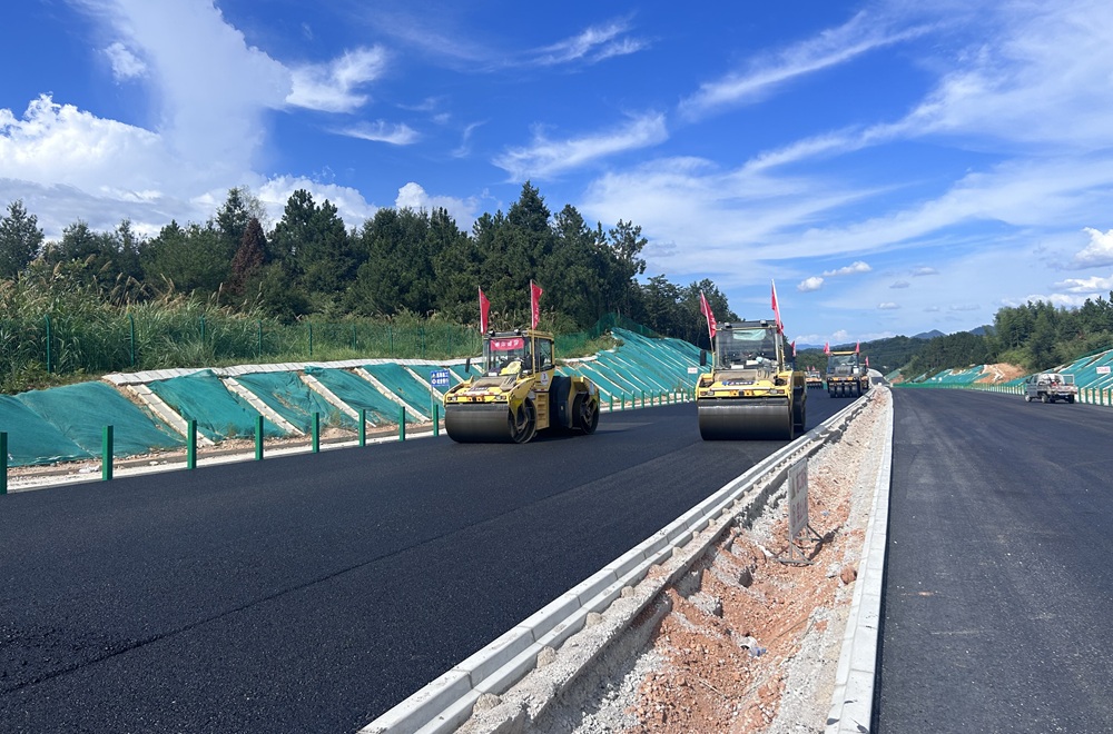 截至目前,涇青高速項目累計完成產值29.27億元,路基工程、橋梁工程、隧道工程均已進入尾聲;路面水穩攤鋪已完成90%,瀝青下面層攤鋪已進入規模化施工階段,交安、機電工程施工正在有條不紊推進。